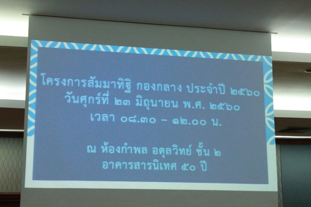 โครงการสัมมทิฐิ กองกลาง ประจำปี 2560